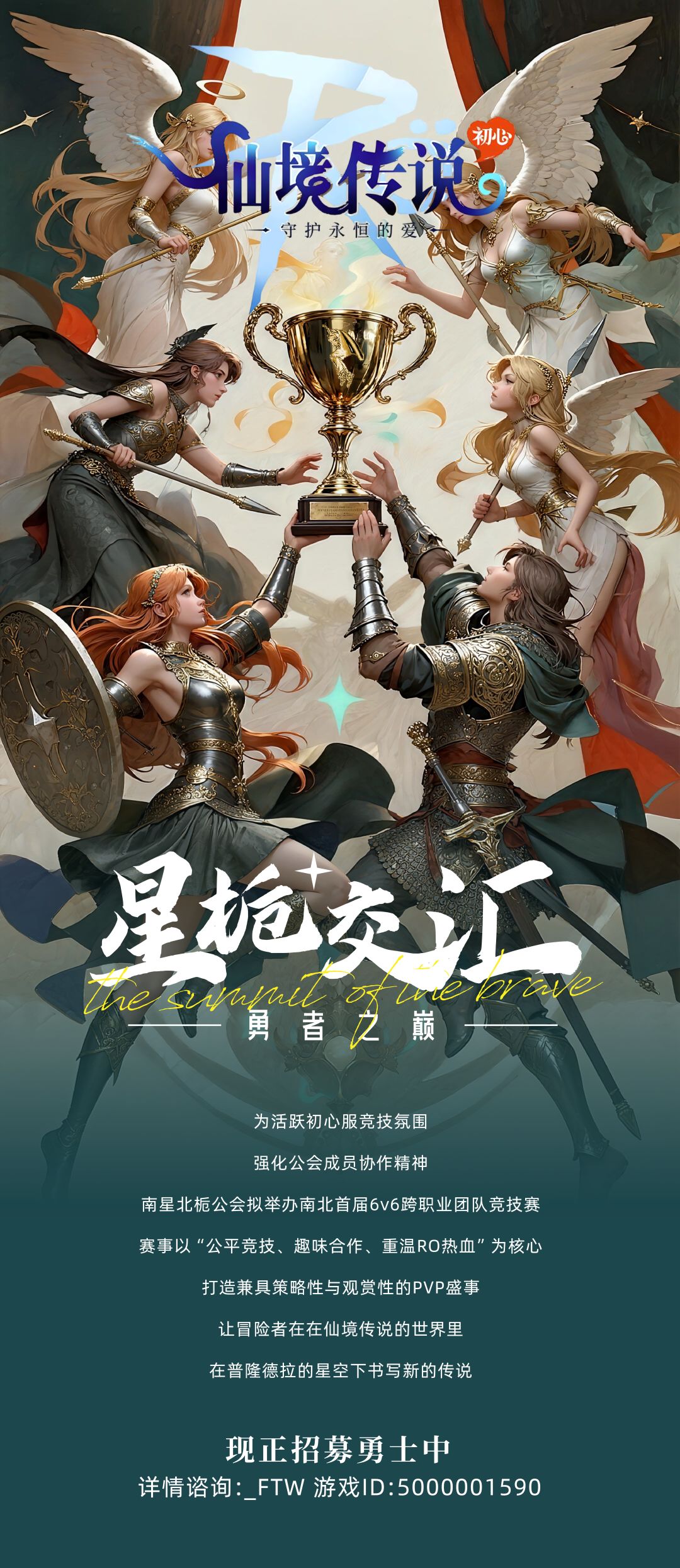 为活跃初心服竞技氛围,强化公会成员协作精神,南星北栀公会拟举办南星首届6v6跨职业团队竞技赛。赛事以 “公平竞技、趣味合作、重温RO热血” 为核心,打造兼具策略性与观赏性的PVP盛事,让冒险者在在仙境传说的世界里,在普隆德拉的星空下书写新的传说。