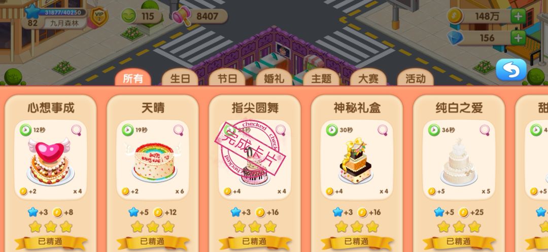 建议:在图册每个蛋糕上面加一个卡片成就完成情况