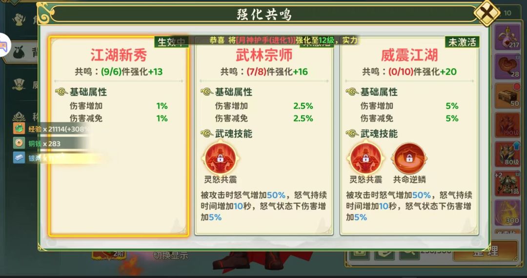 我每次强化都感觉我脸太黑了,就没有欧皇的时候,唉,每次强化全靠肝。新出的这个强化共鸣真的很不错,又给游戏增添了许多乐趣。期待有朝一日成为威震江湖的英雄。