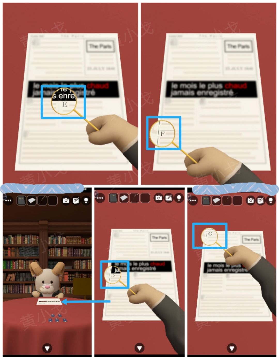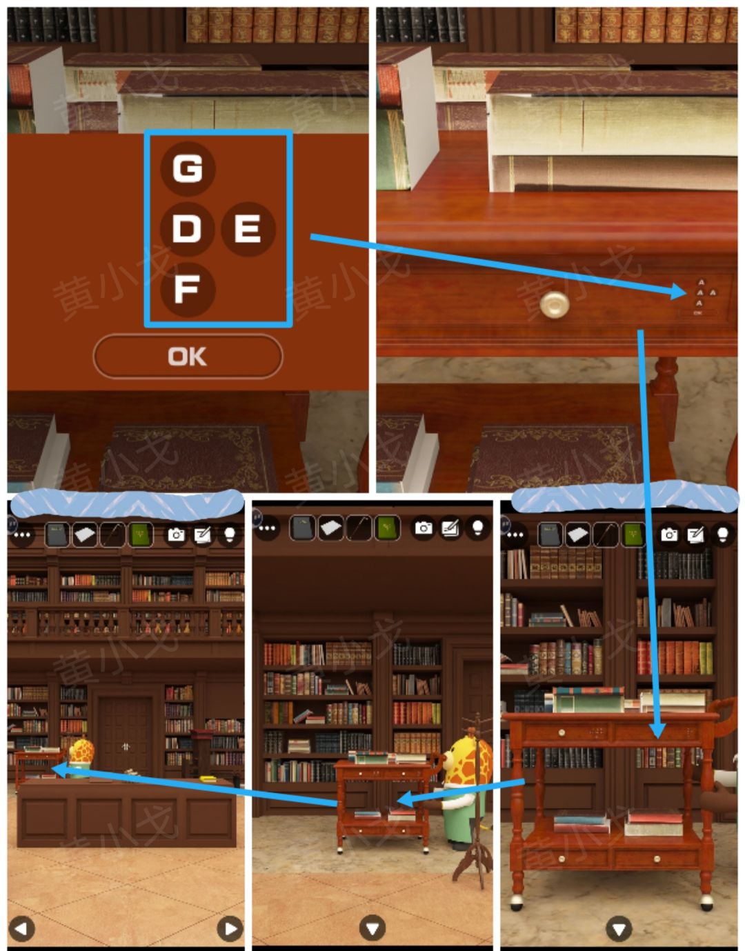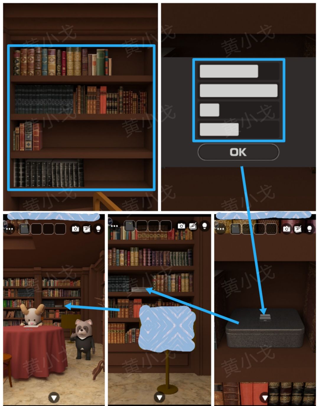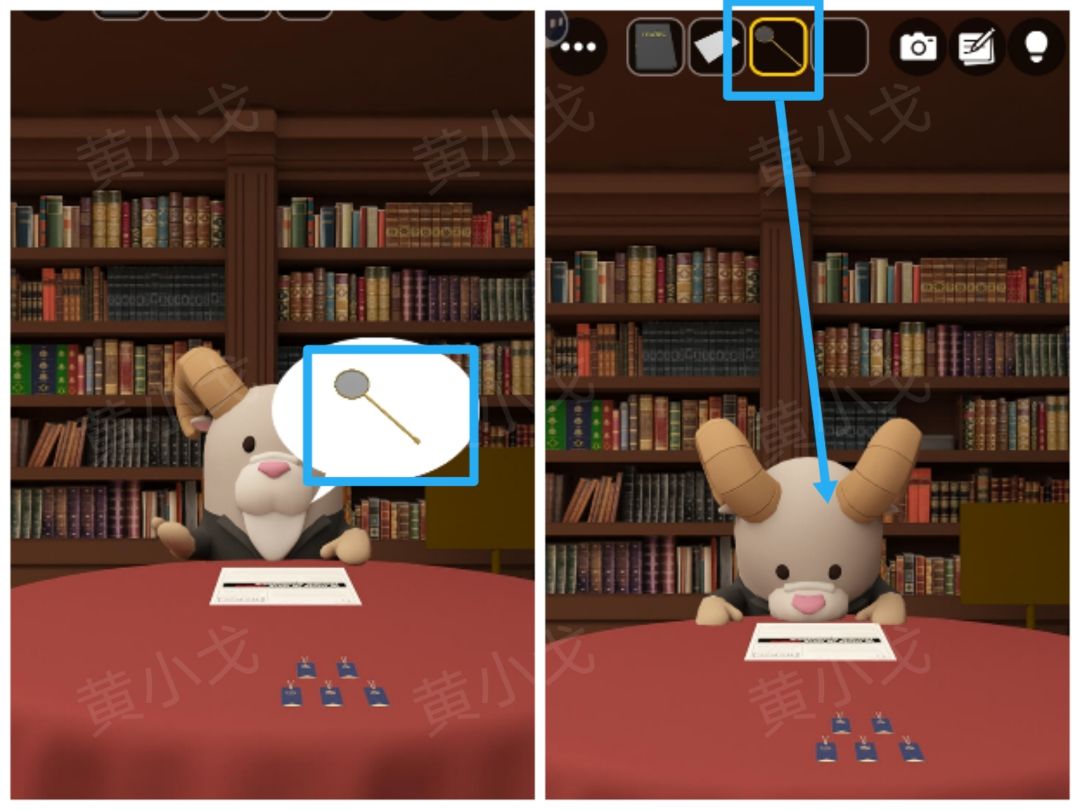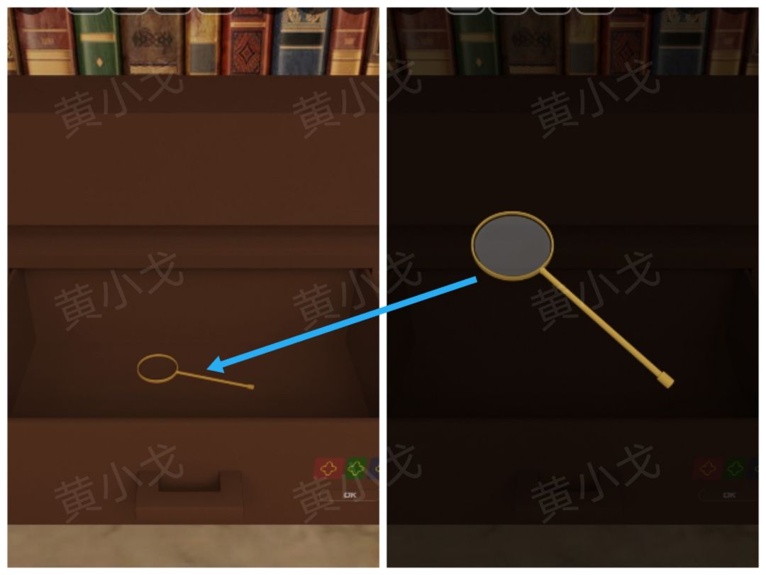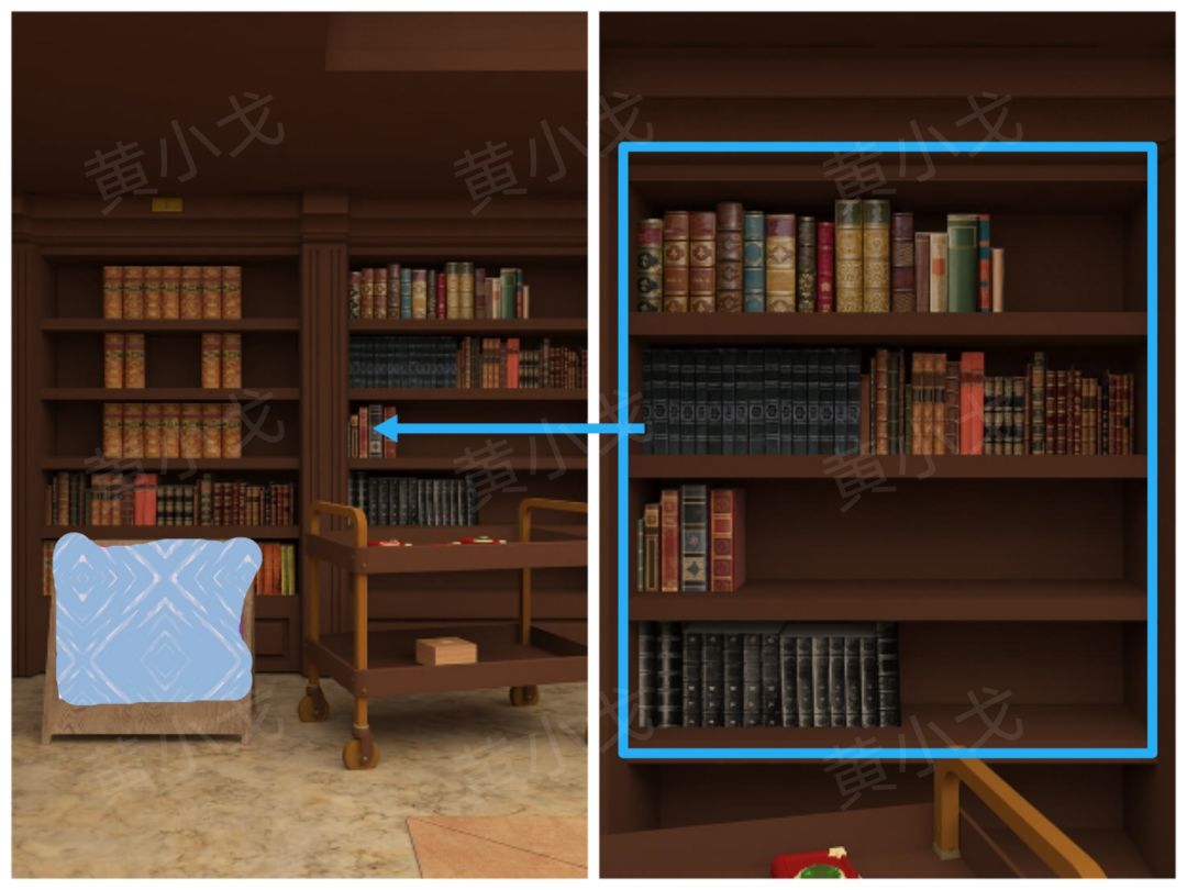 1.点击左侧书柜,获得线索