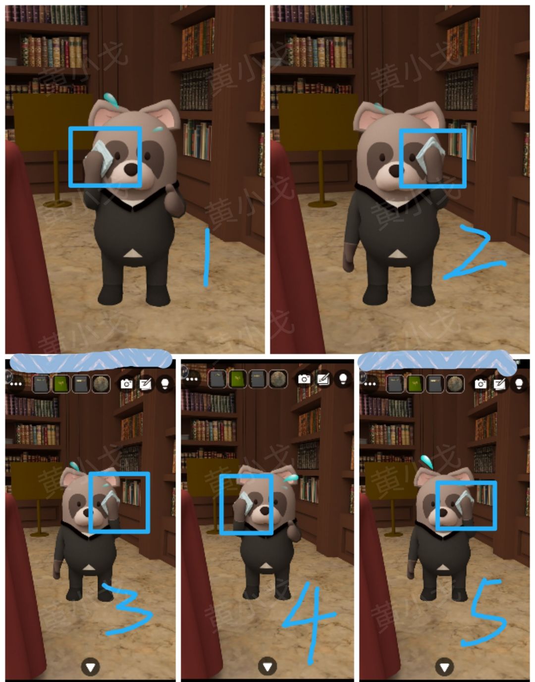 31.根据熊擦汗顺序,按顺序点击按钮;打开暗格,获得【尺子】