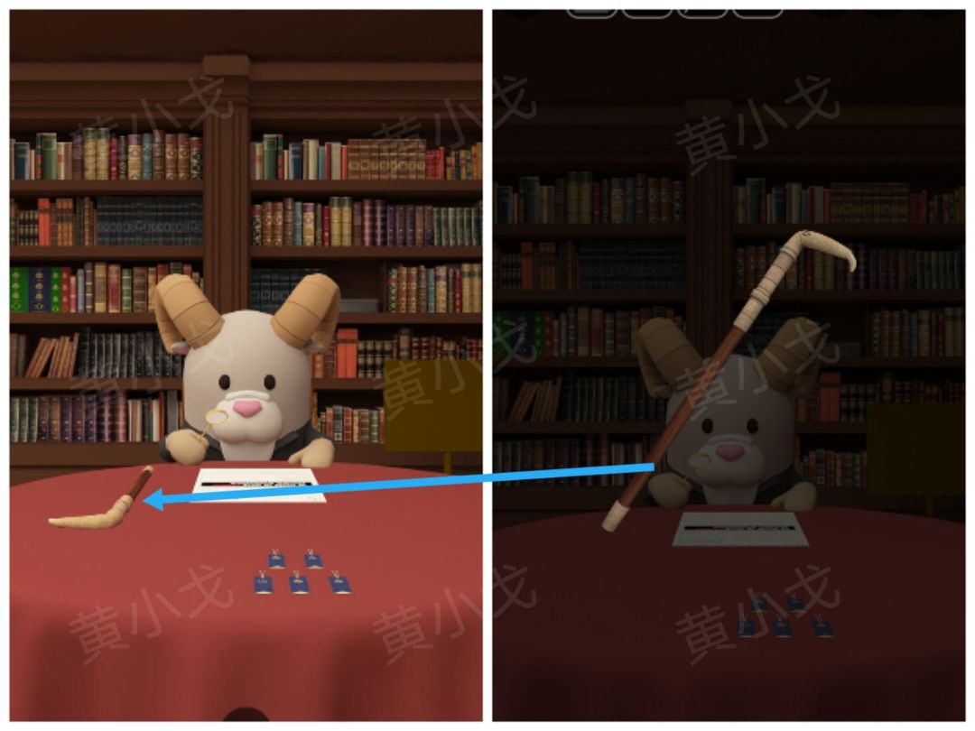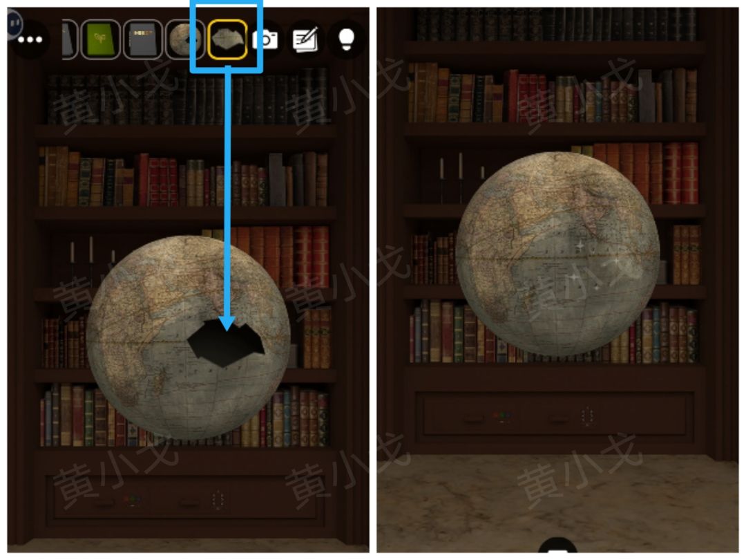 21.点击右侧书柜上的【地球仪】,用【拐杖】够下来