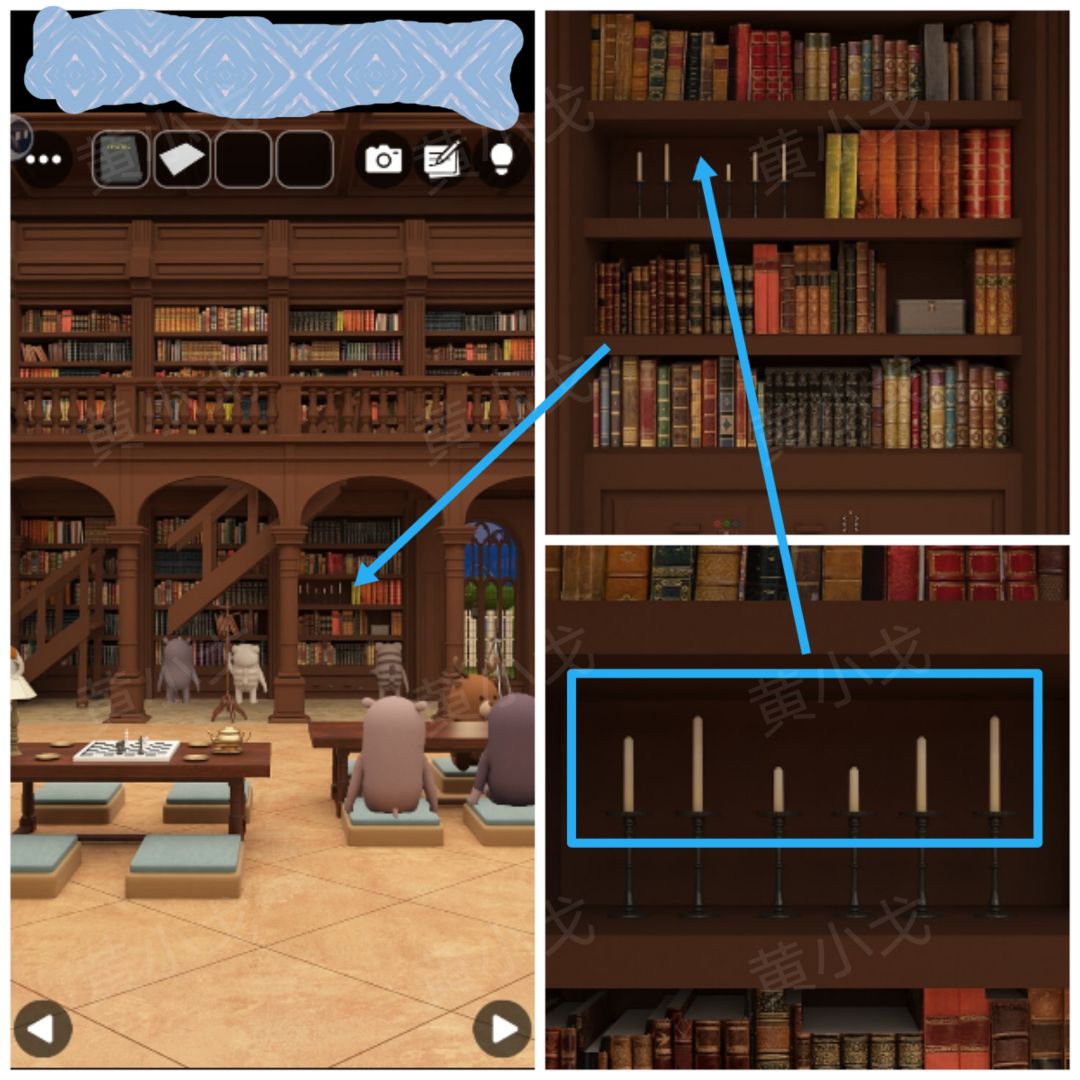 10.点击右侧书柜,查看上面的蜡烛,获得线索