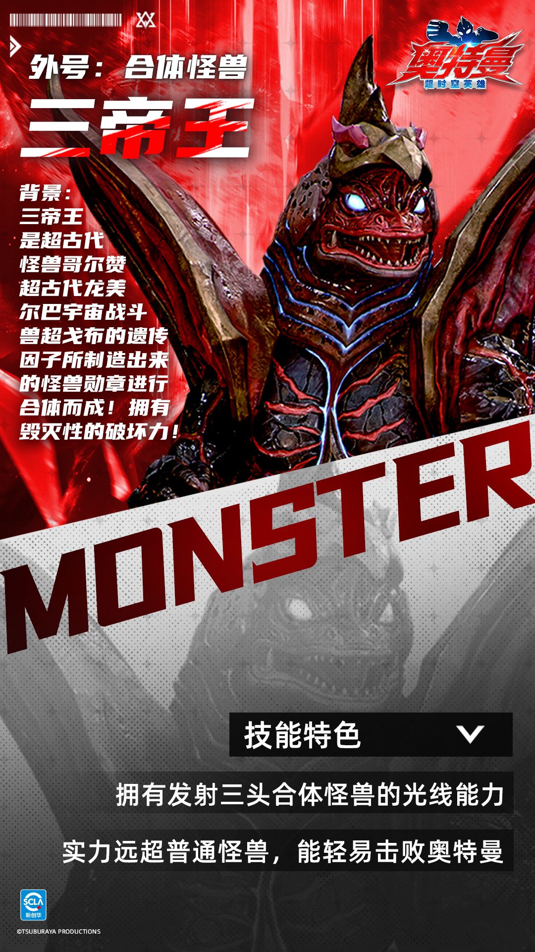 各位队员们,今天请暂时放下光芒,化身黑暗的支配者!这一次打破阵营界限,你不再只是守护和平的光之巨人,而是操纵庞大凶暴的怪兽,在竞技场上展开硬核搏斗、释放毁灭性能量,体验力量碾压、技能爆表的反派快感!