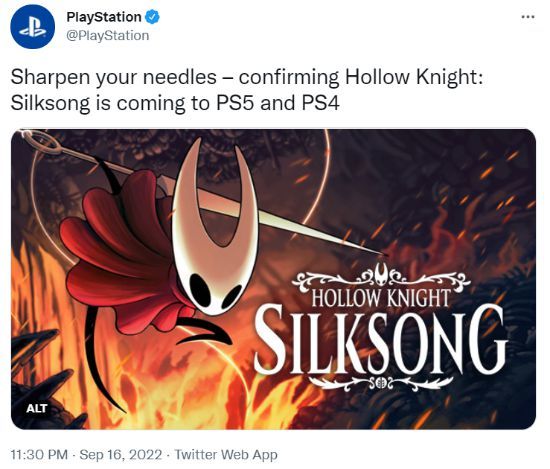 2022年9月PlayStation官方重申《丝之歌》将登陆PS系主机,确认同时登陆PS4/PS5平台。同时释出新游戏截图,这张图也就是我们这些自媒体用了无数遍的封面。