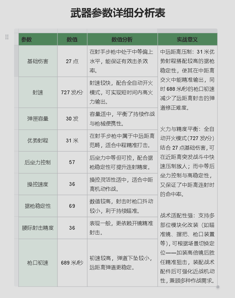 不适合玩家纯近战冲锋玩家:较长的枪管与中等操控速度,使其在狭窄地形或近距离肉搏中灵活性不足,难以与冲锋枪、短突击步枪抗衡。