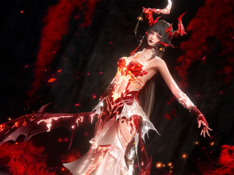 她的翅膀是极致的幻想。我们融合了鸟类翅膀粗壮的骨架与蝙蝠翅膀半透明的翼膜,创造出了一对独一无二的龙翼。半透明的翼膜之上,有火星在明灭闪烁;而坚固的骨架之下,则有岩浆在不断滴落,充满了毁灭与创造并存的矛盾美感;