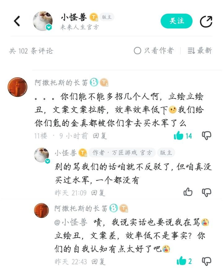 说几句实话被说是在骂,我请问呢,文案拉胯,立绘丑,效率低下不是事实?真是好大一张脸