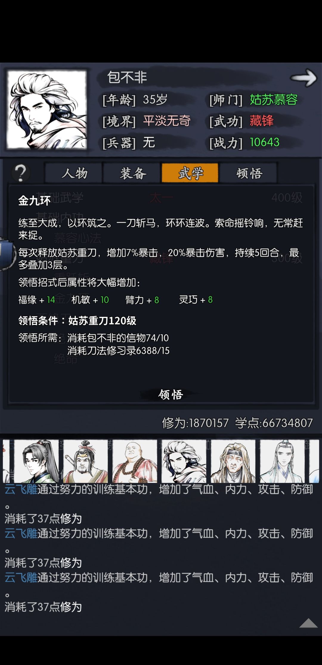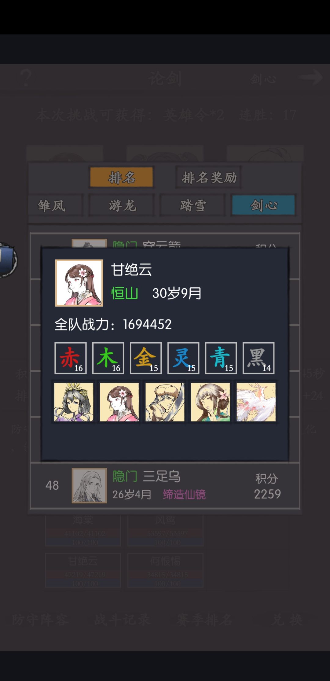 (可惜这游戏不能看自己战力,不然点完侠客看看自己战力提升了多少)P5论剑看的169.4w战力