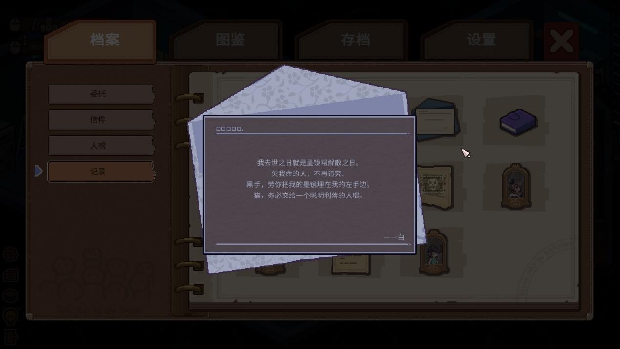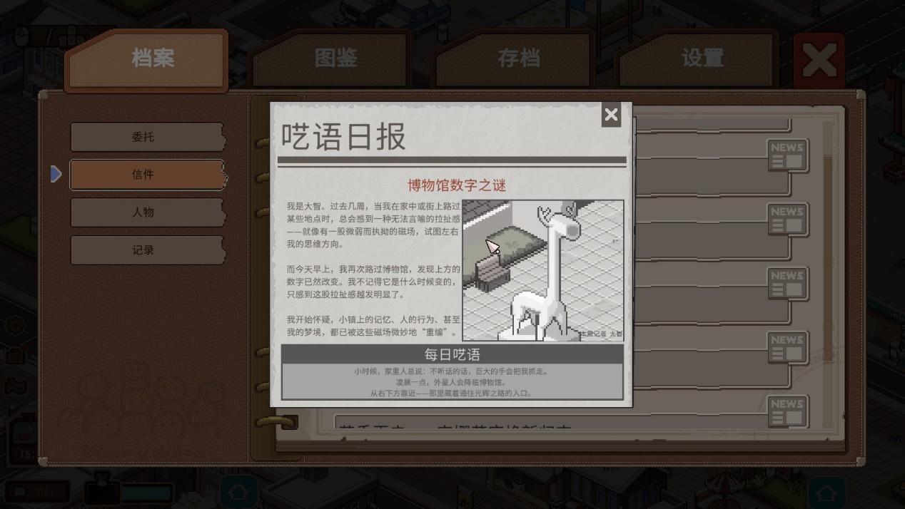 到这里不知不觉的发现,《呓语小镇》其实并不简单,他和《星露谷物语》一样,在这个小镇上,每个NPC都有自己的生活和故事,同样的主角是新入住的居民,小镇的居民会给主角各种委托,在不经意间渐渐的影响到小镇每一个人的生活足迹,而每一个小镇,背后都有自己的故事和秘密。