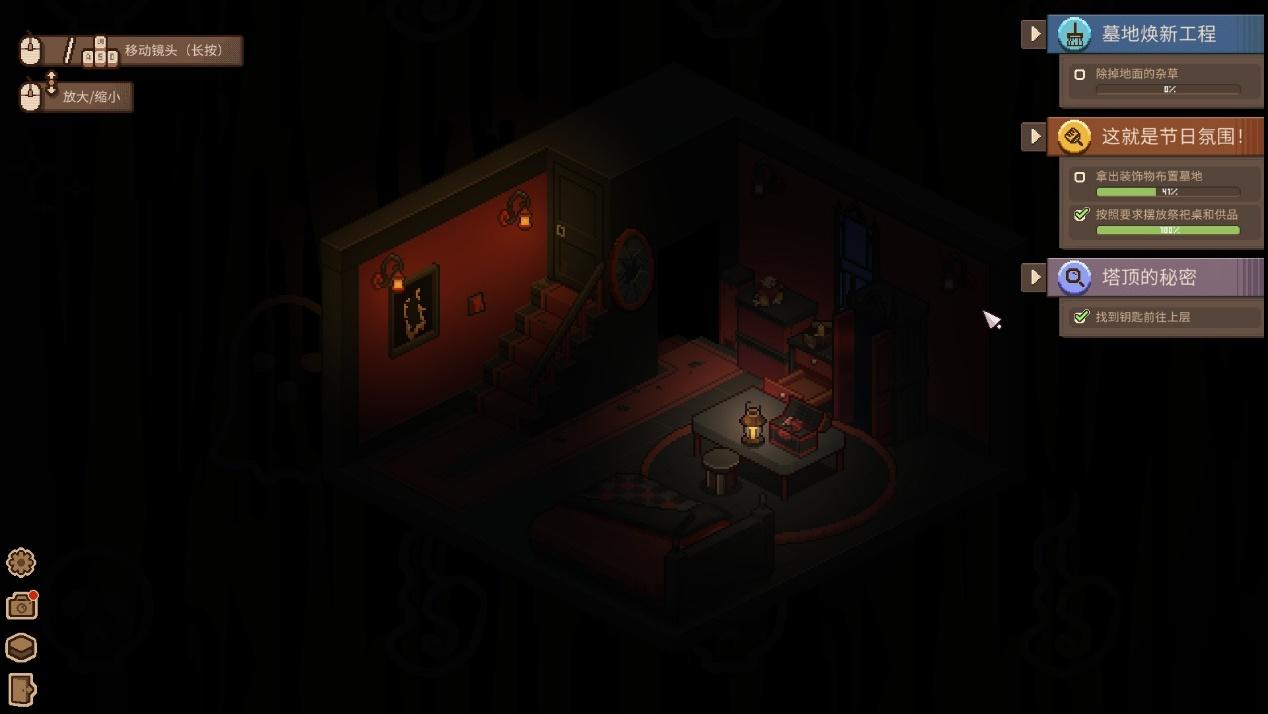 游戏中居民给我们的委托除了装修外,还有找猫猫、打扫卫生、整理家务…甚至还有帮派的遗物整理,当然我们的委托地点不仅仅只是公寓,还有酒馆、花店、墓地、烘焙房、便利店地下室等等各种场景,真的非常丰富,有时候甚至会带有些解谜的味道,比如恐怖的墓地塔楼。