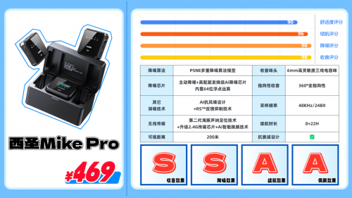 开学季来啦!如果你正在为课堂教学、线上课程或内容创作挑选一款高性能麦克风,西圣Mike Pro无线领夹麦克风一定要列入你的开学数码好物清单!这款专业麦克风凭借卓越的收音质量和强大的降噪能力,在市场上赢得了极佳口碑,深受教师、讲师、主播及博主喜爱。在500元价位段堪称性价比天花板,广受推荐,是实打实的“性能卷王”。