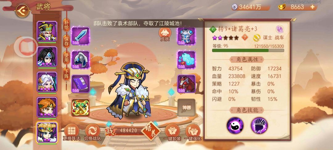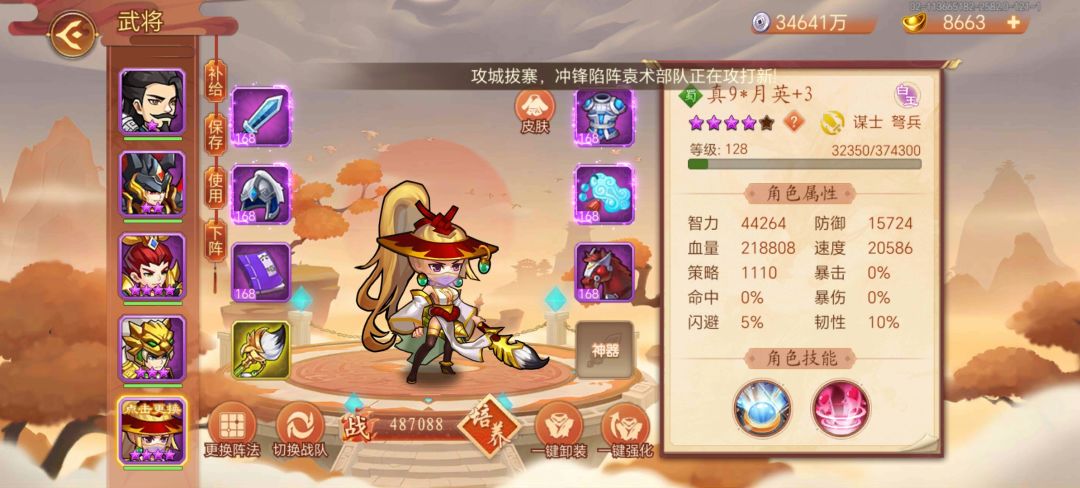 现在刚过五百万战力,帝都里逛了一下发现啥也打不过,白马阵12阶结果速度还是太少,现在用的是云龙阵7阶,大佬们我想问下我现在的情况要用孔明貂蝉月英邓艾之类的替换一下阵容吗?