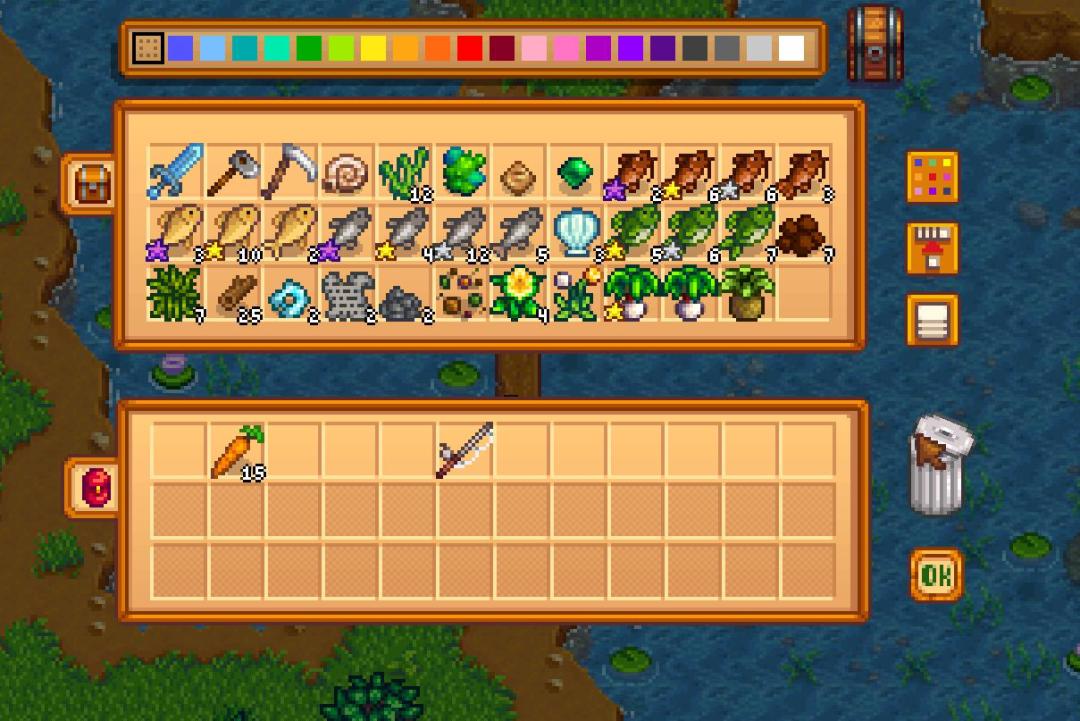 第三天解锁新鱼竿今天固定下雨不用浇水,我们去捡野葱,翻完垃圾桶之后去海边买玻璃纤维杆,新鱼竿可以带鱼饵,卖鱼多出的金币全部梭哈鱼饵(5金币),装到鱼竿上。