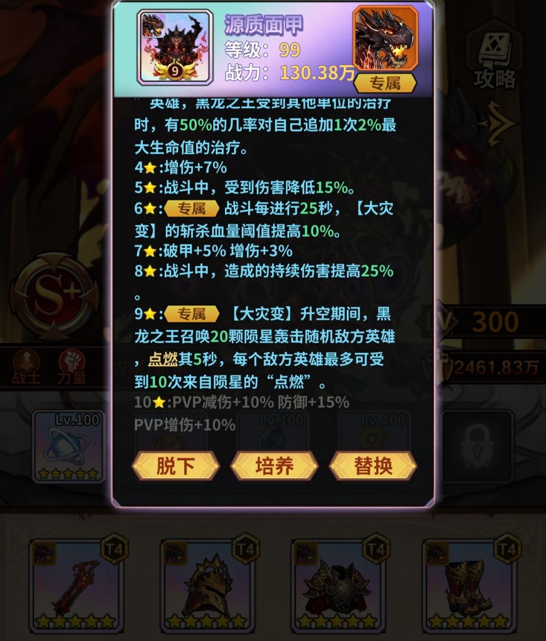 ② 主C彩装出后,把公会币全囤着等T1和T2。副本到24章出T1,第29章出T2,第33章出T3,T4目前只能通过宝库活动获得。亲测零氪53天可到33章,开始掉T3