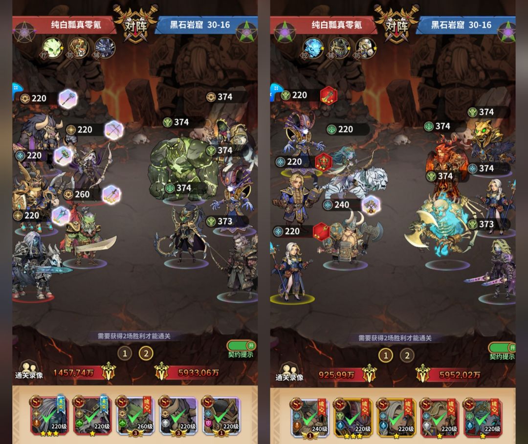 ② 此时,开始同步给一点资源给小黑,有些关卡需要把小黑放2队,配合山丘点杀,而且有时小黑站到了最后,丝血翻盘过关或干翻。