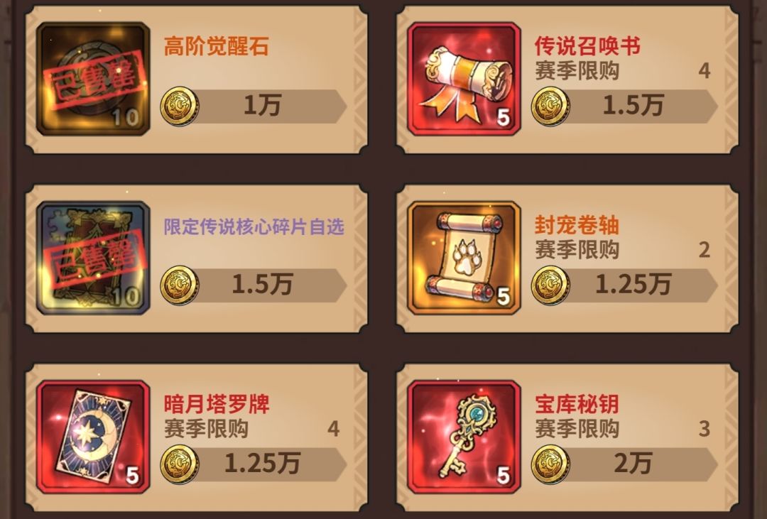 赛季商店,必拿钥匙、传奇卡碎片和高觉