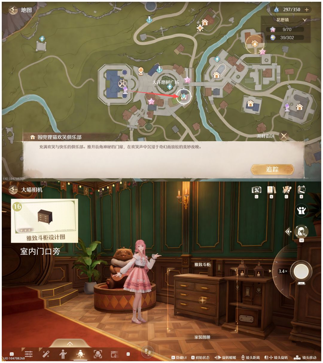 除了16号在【围兜狸猫欢笑俱乐部】以外,【心愿原野三册】的家具都在【诺诺伊家】中。