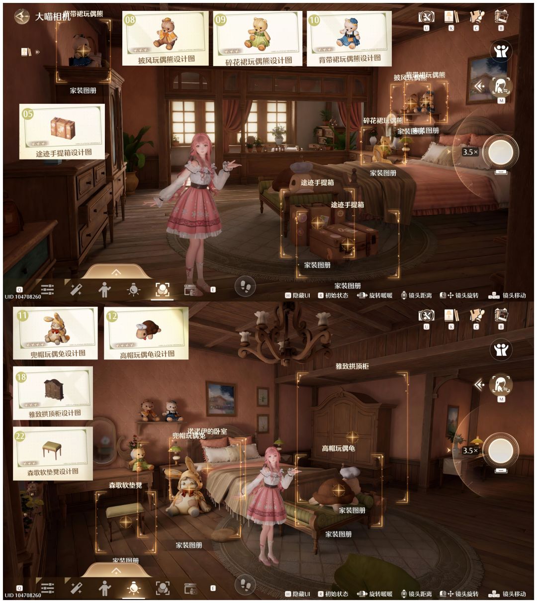 🔟背带裙玩偶熊(P6):在【诺诺伊家】室内二楼的房间内,与5号、8—12号、18号、21号、22号家具一起一个房间内;