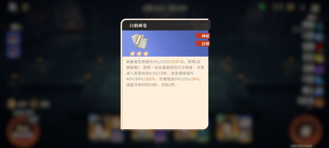 辅助位:建议搭配白狼令牌和海潮之石,给自己拉盾防止被秒和易容属性保障输出位残血不被秒。