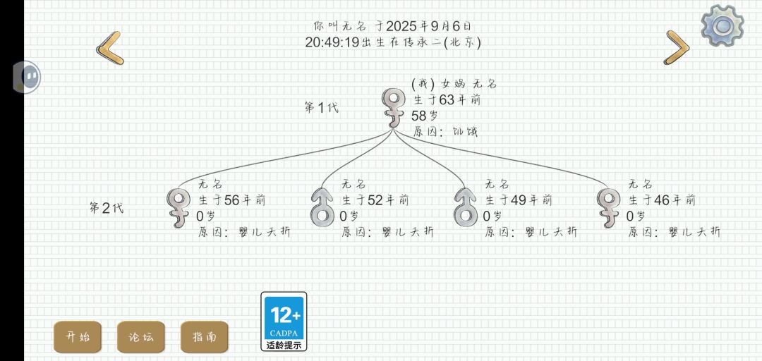 华夏人生我强烈建议找一两个游戏搭子一起玩,但比较不会玩的(操作不是很流畅)不要找太多的游戏搭子,原因只有一个前期食物不是很多。但是最好还是要找一两个游戏搭子原因有两个,①如果不小心碰到蚊群了就会发烧,发烧后有可能直接被饿死。②当你家里有事时可以让搭子喂你吃东西防止饿死。最后我还发了我玩的游戏情况最后的饿死就是因为我家里有事结果被饿死了希望大家引以为戒。