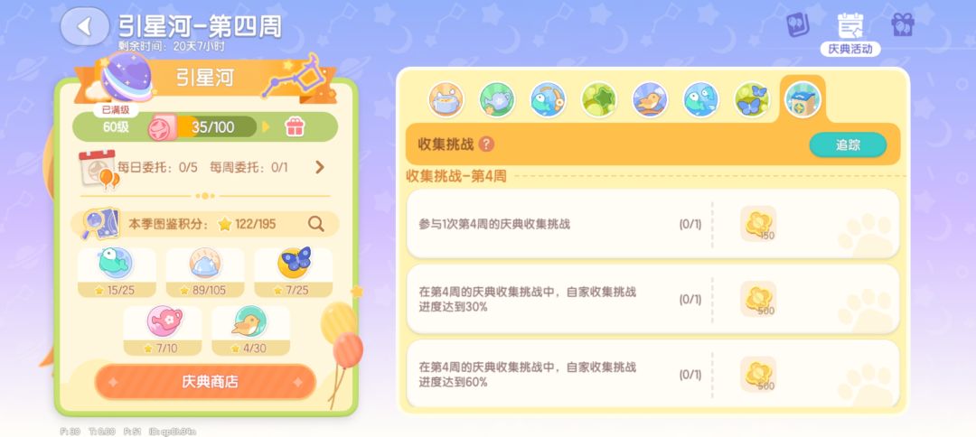 引星河庆典来啦宝子们,第四周活动简易攻略奉上,完成7个就可以拿到周奖励啦