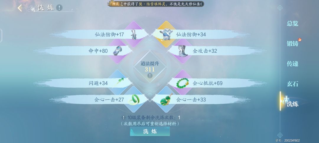 2、洗练等级越高,洗练获得的属性上限越高。提供的战力数值也越高。