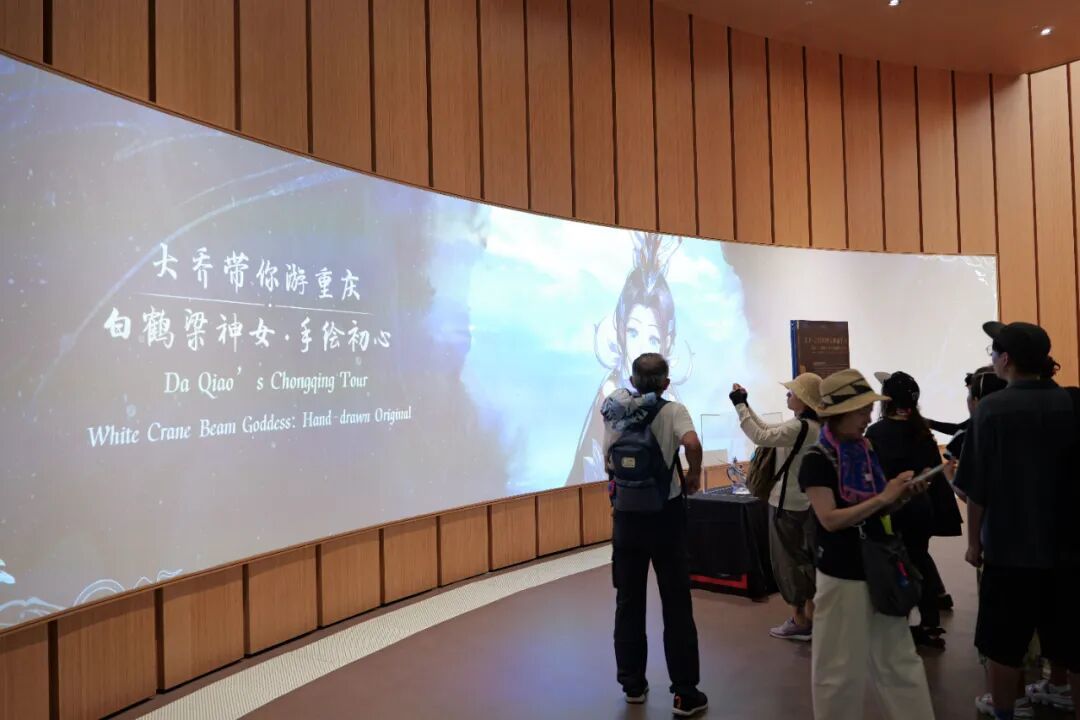 展板向观众娓娓道来白鹤梁背后的历史:这处千年水文石刻,既是一部镌刻在长江中的编年史,也是书法、石刻与民间智慧的结晶。“石鱼出水,以兆丰年”,不仅是农耕文明的朴素信仰,更传递出人与江河共生的东方哲学。这一切,都通过“白鹤梁神女”的形象——她的水纹裙裾、双鱼饰件——变得可视、可感。