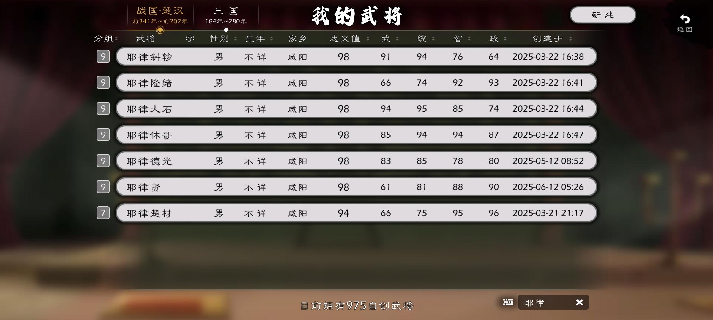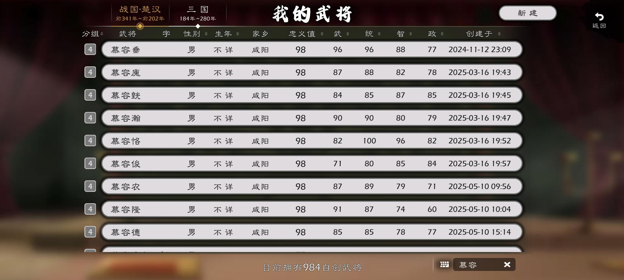 虚构势力:1、嬴霸先。麾下全是无限再动玄甲军、怯薛军、法师和bt的特别武将(赵云、马超、马云禄、吕布、吕绮玲,以后用来生孩子玩),城池分布也非常有艺术感,所有宝物都给了他。自己用最好,如果想给自己找刺激的,可以给电脑用。