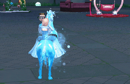 本期《劲舞团》手游再续与冰雪之前缘,推出双人坐骑【冰霜骏马】。坐骑外表为一匹冰蓝与雪白渐变的透明骏马,雄壮威武,气势恢宏。随着冰霜飞舞,昂扬的骏马从远处奔驰而来,策马奔腾的一双人儿更是意气风发。