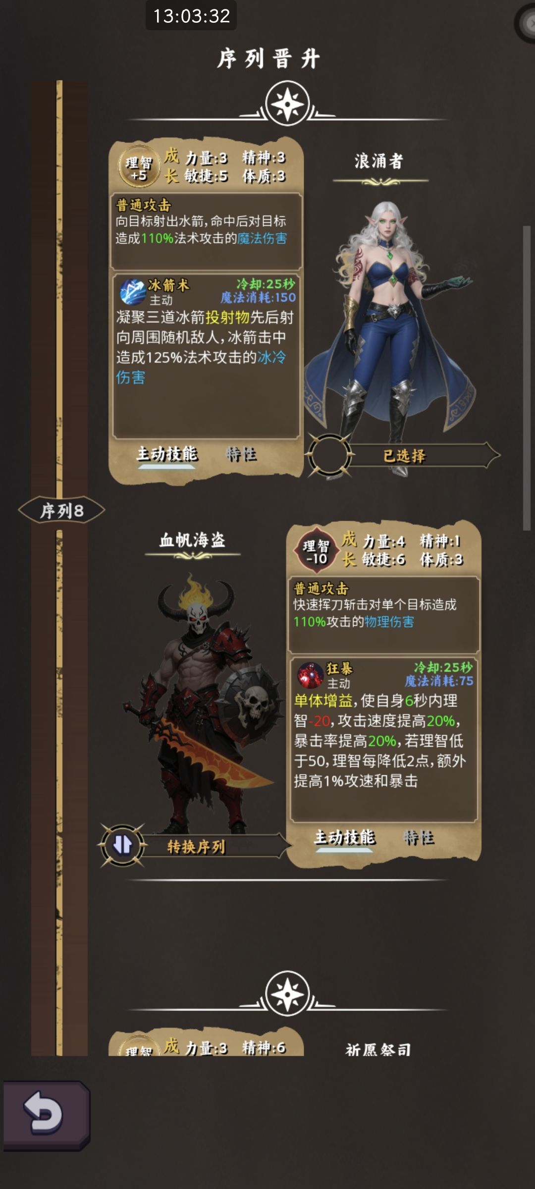 每阶序列有两种不同的演化,每次的选择后除了普攻形式外,之前序列的特性和技能都保留生效。从低到高9-0阶,10级开始每20级一阶。