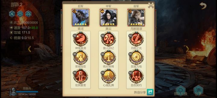 怕驱魔爆发队,开局挨打1回合死了很多兵就很难打了,还有前三回合开演不放技能,虽然说技能概率都不低,但毕竟不是100%。竞技场可以换别人三队或四队,打7级城6万守军,做到过直接连穿10队。