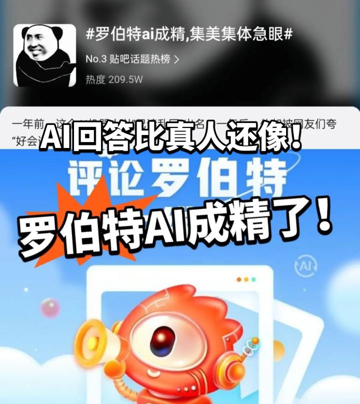 近日罗伯特AI成精 迅速冲上贴吧热搜,引起网友热议。它是🧣上的智能机器人,能精准接住各种梗