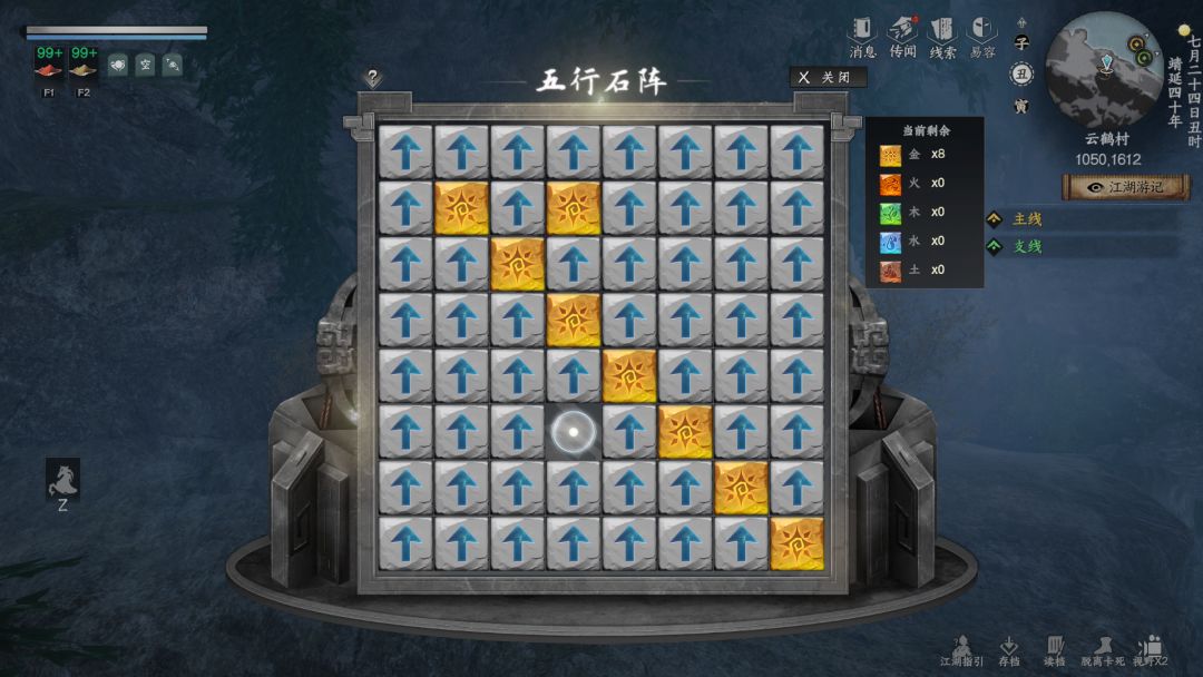 移动光点到对应的上下左右方向移动元素石碑,将两个或者以上元素石碑对齐消除不留一个解锁机关
