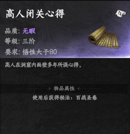 悟性大于80使用获得百战圣功化境卷