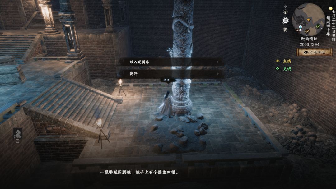 来到地宫内两侧石柱交互放入龙腾珠