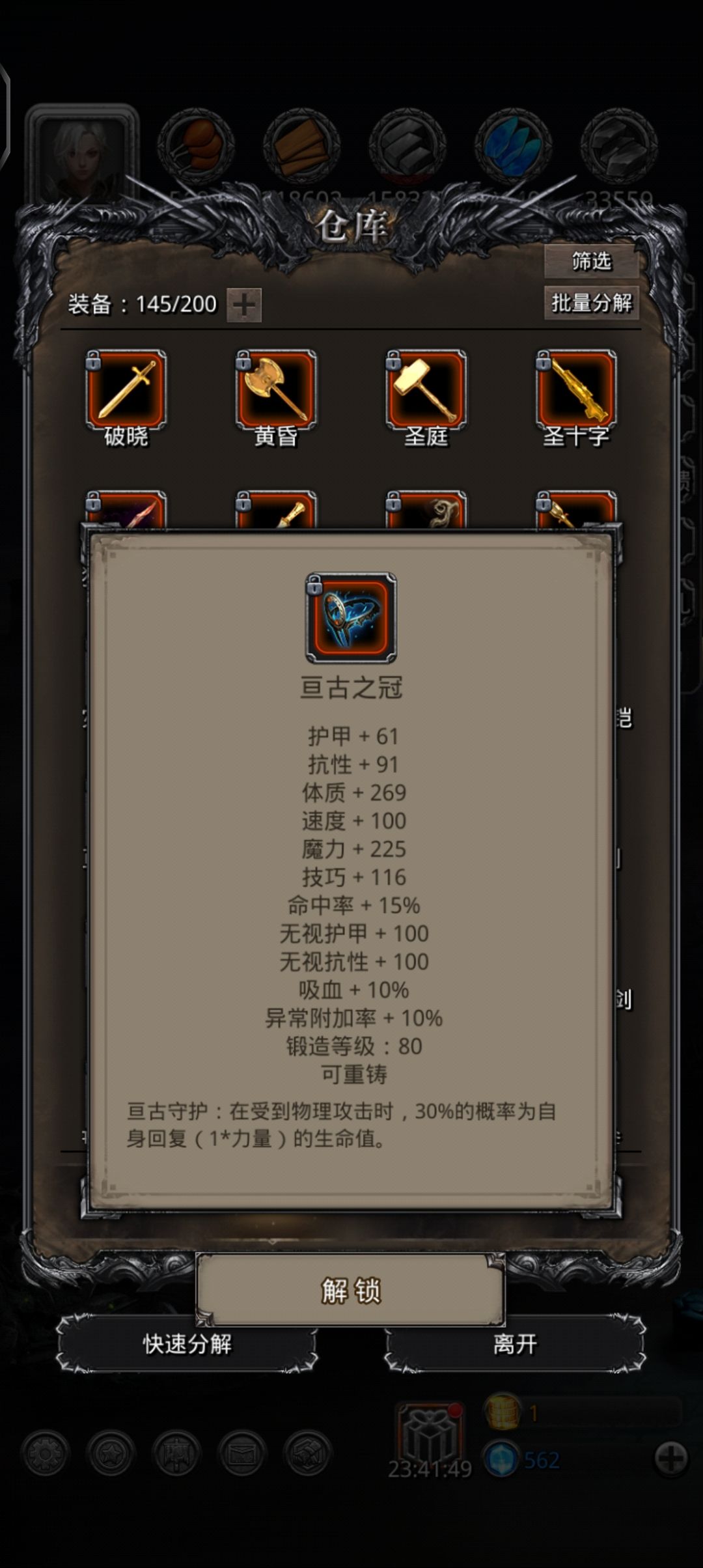 ④唯一的自制红流血是双天启刷的魔技,一次就出了运气太好。本来有个红板甲给教宗带的,但是因为力量太高导致奶量变低,于是扔在仓库里吃灰了。