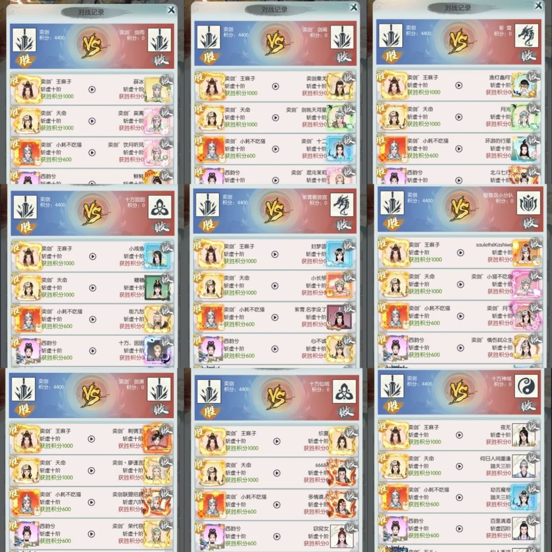 再就是仙盟活动,首先是遗迹,第一期就以绝对优势取得第一仙盟的优异成绩,现在常规入选5盟进前10,且在紫霄氪金积分第1的情况下,巅峰赛后,主盟总排名稳定第1,小分队名次更是有突破到第2、3名的佳绩。本次巅峰赛主盟更是全胜获得满分,没戳!就是9组90人次对决都是4400分的大满贯哦,可谓是把排兵布阵发挥到了极致!