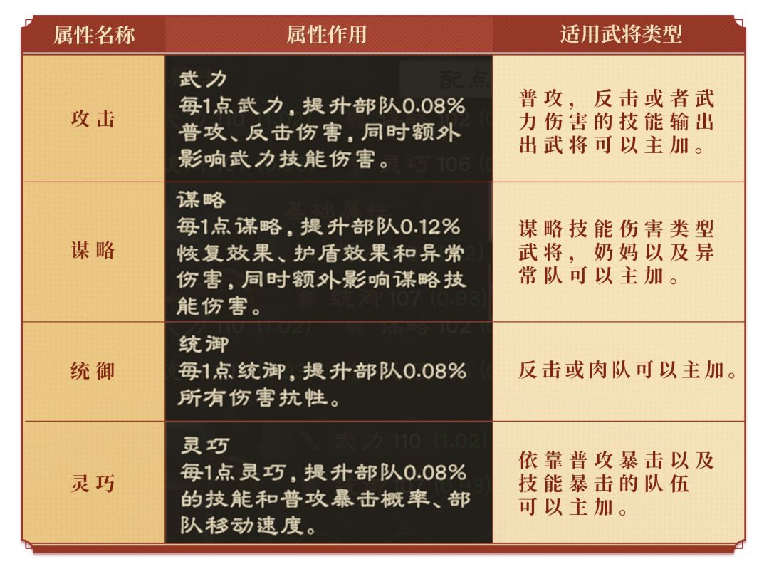 武将的属性加点