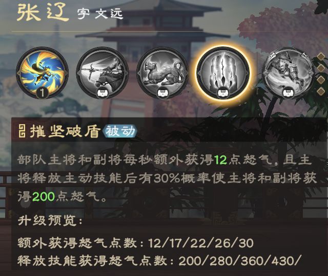 例如张辽这里可以为吕布回怒,两者还有羁绊存在,就可以作为吕布的最优副将选择。