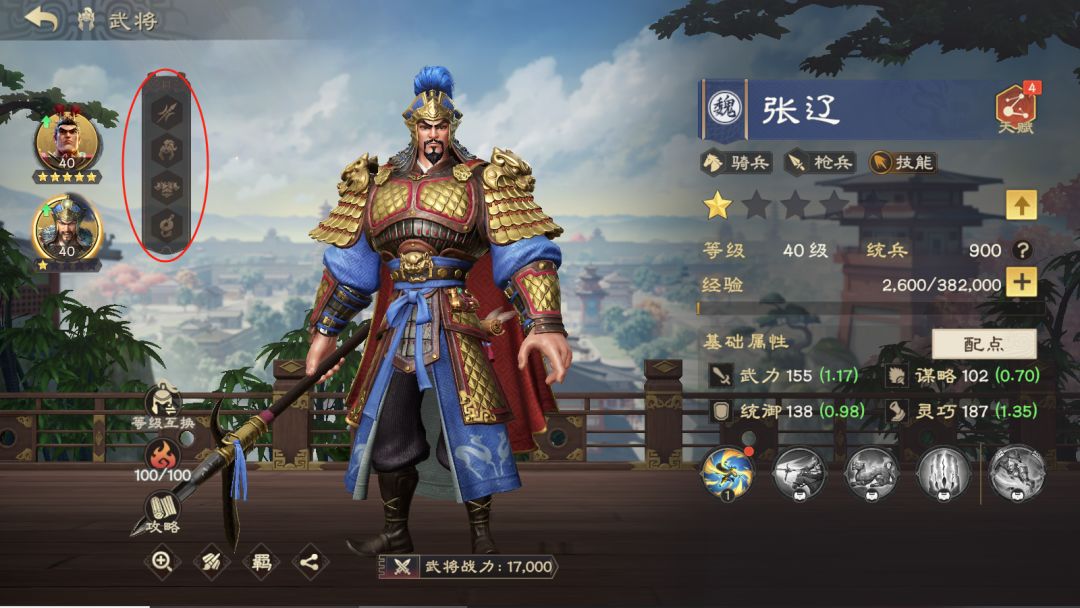而副将张辽在选择天赋时,也应当选择对主将有增益的天赋,例如这里,我们应当选择定韬兵略。