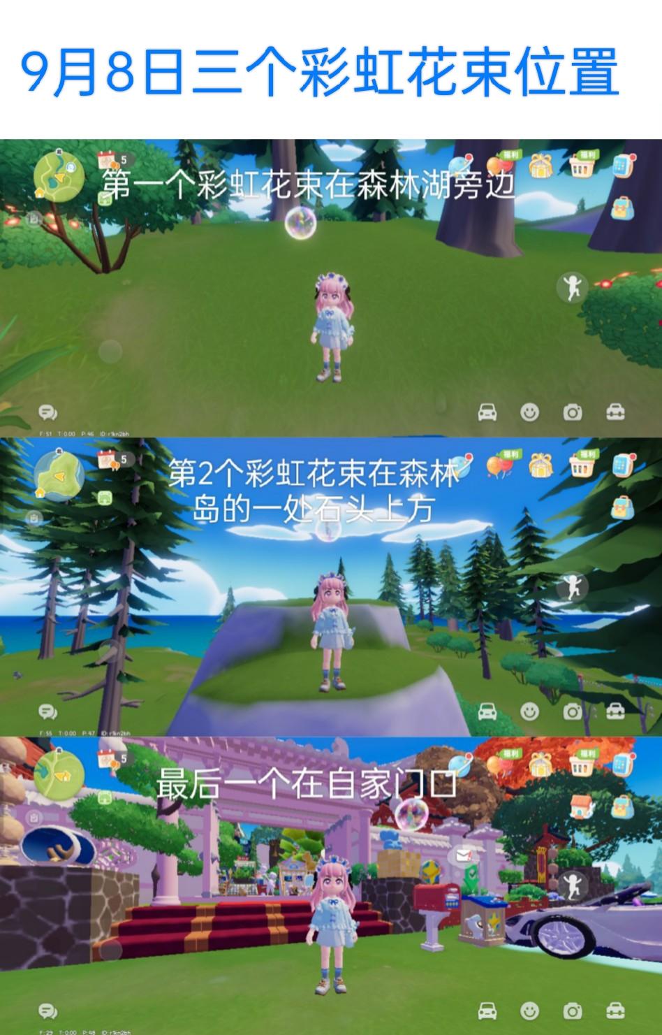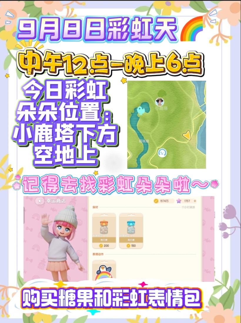 今日彩虹朵朵位置在森林小鹿塔下方空地上