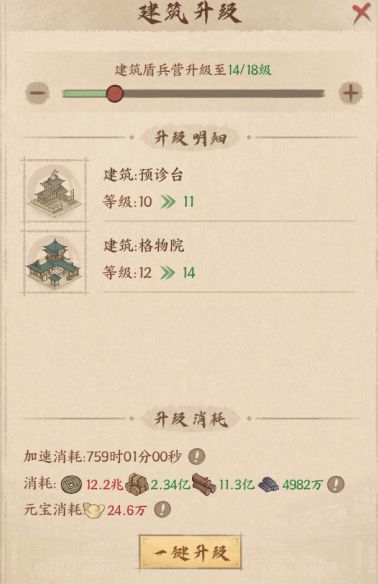 可以提前用一键升级拖动看一下前置,避免卡住主要建筑的等级早做规划。