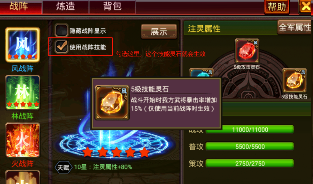 💡 不同战阵5级技能灵石效果