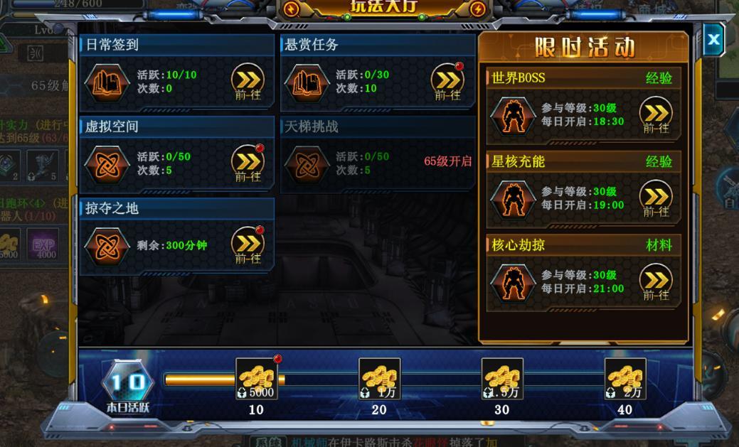 21:00 - 21:15 则是核心劫掠活动。地图中会刷新携带密钥的 BOSS,击杀 BOSS 可获得密钥,也能击杀已获得密钥的玩家夺取密钥。持有密钥者每秒可获得绑定晶石奖励,只要参与活动的玩家每秒也能获得金币奖励 。