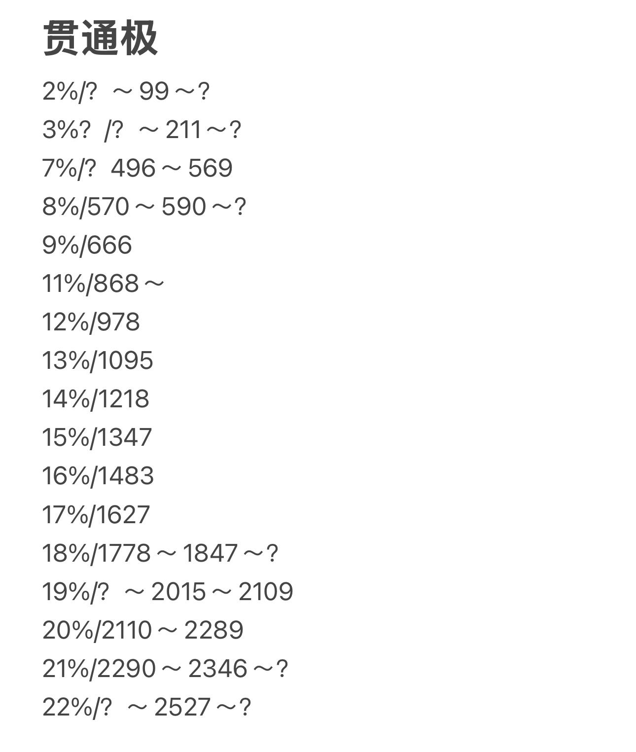 各位佬们也可以根据手上的贯通等级帮忙验证一下是否符合,如果有处于临界值的等级就更方便验证了![[表情_可爱]](https://img.tapimg.com/market/images/86e3f28f5dddd78c532e8c470622c845.png)