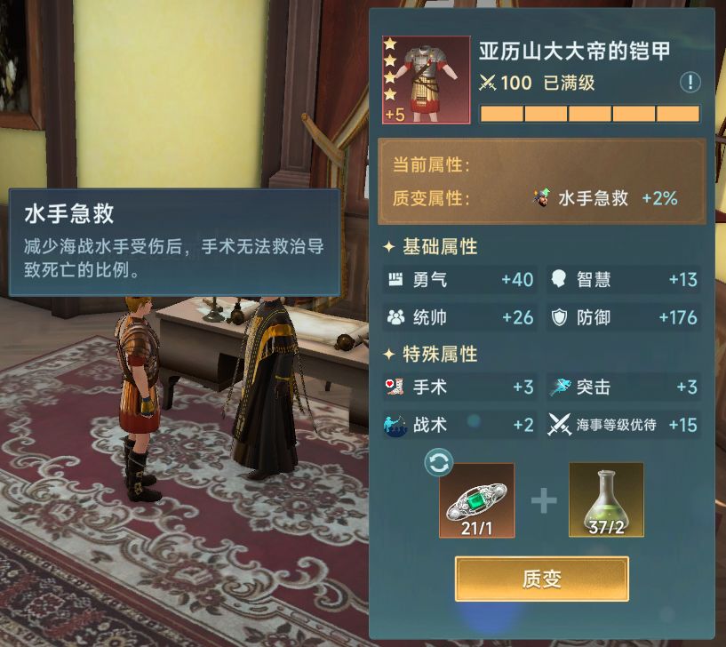 亚历山大大帝的铠甲升到100等级时候会额外加1手术等级