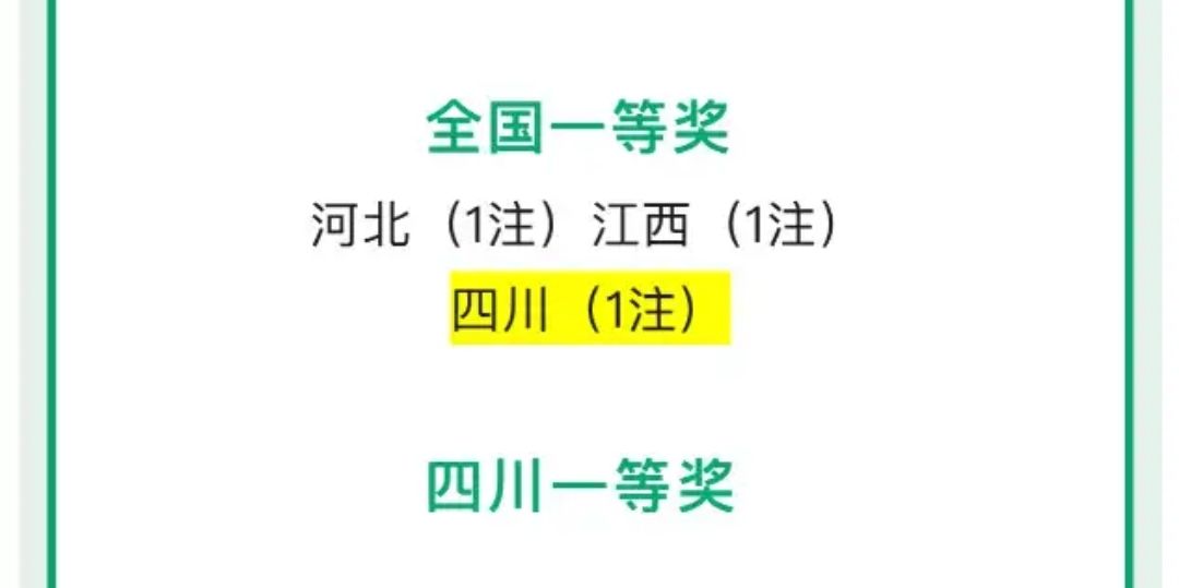 据四川福彩发布消息,9月7日双色球第2025103期开奖,四川成都市金堂县一彩票店中出一注一等奖。