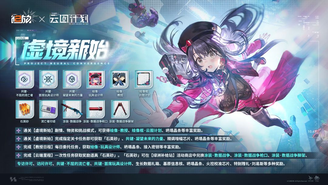 ✦ 通关【虚境新始】剧情、物资和挑战模式,可获得绘像·教授、绘像框·云图计划、坍塌晶条等丰富奖励。