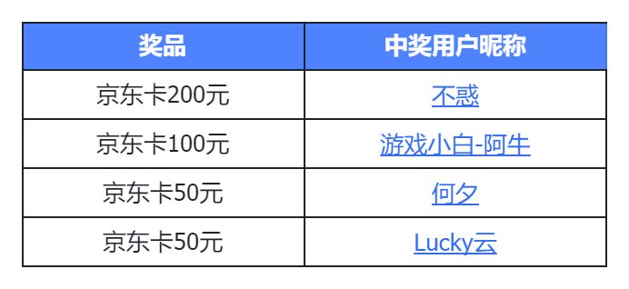 本期活动开奖已完成,感谢各位团长们的积极参与!以下为本期活动获奖名单~